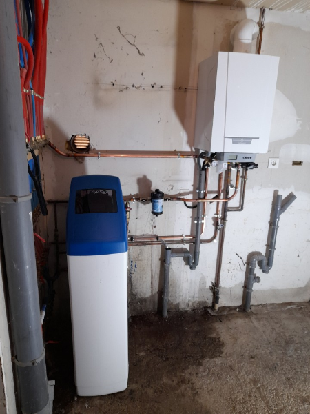 Mise en place d'une chaudière gaz à condensation avec production d'eau sanitaire instantanée.